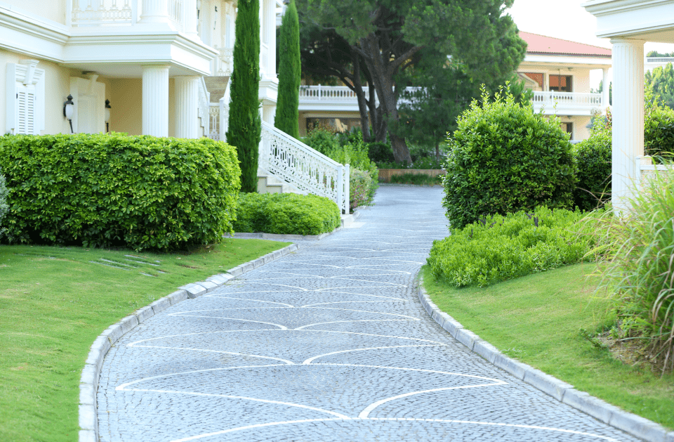 Custom fire pits are installed to create cozy, inviting gathering spaces.